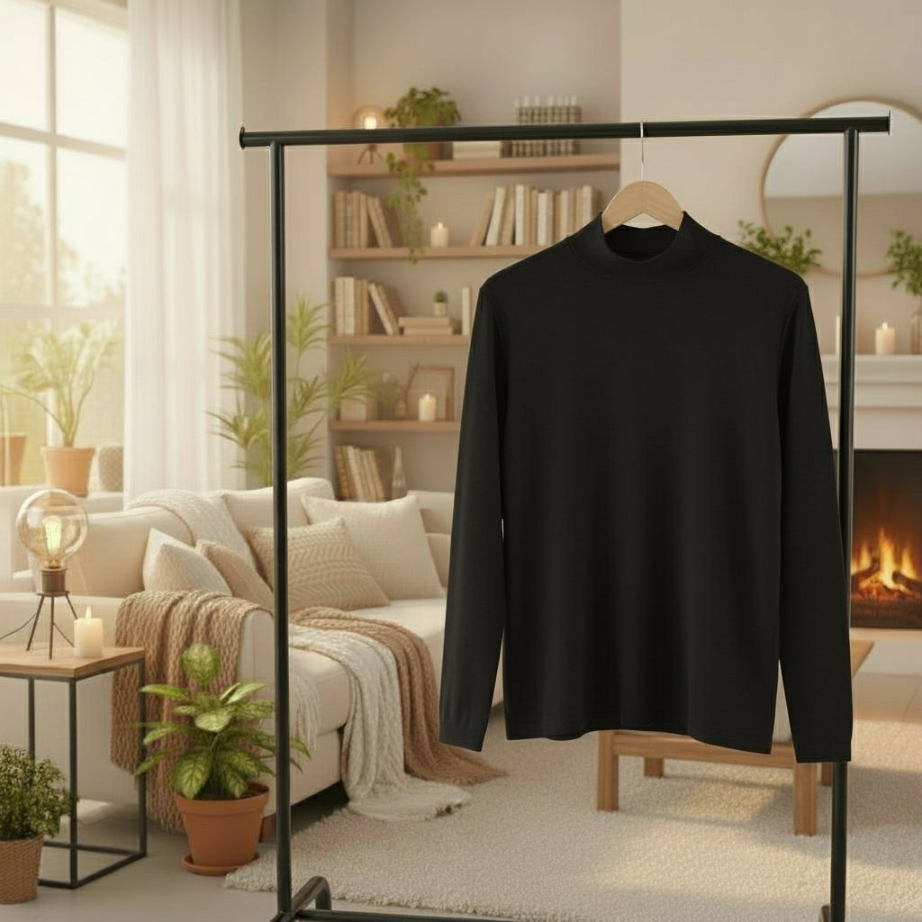 Sa texture tricotée retient la chaleur sans alourdir la silhouette, idéale à porter seul ou en sous-pull sous une veste, un gilet ou un blazer.