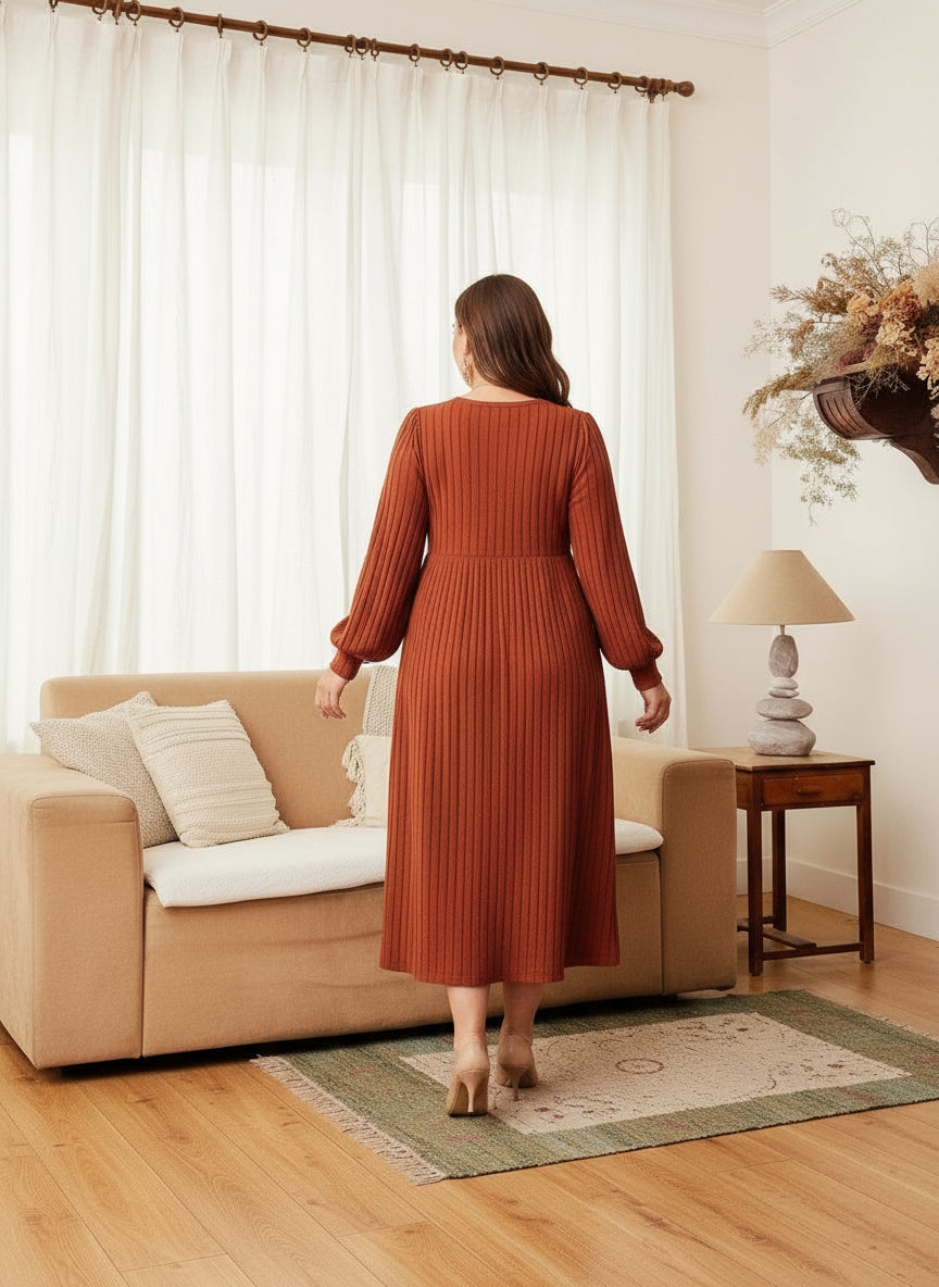 Cette robe mi-longue grande taille à manches longues est l’alliée parfaite de la saison automne/hiver.