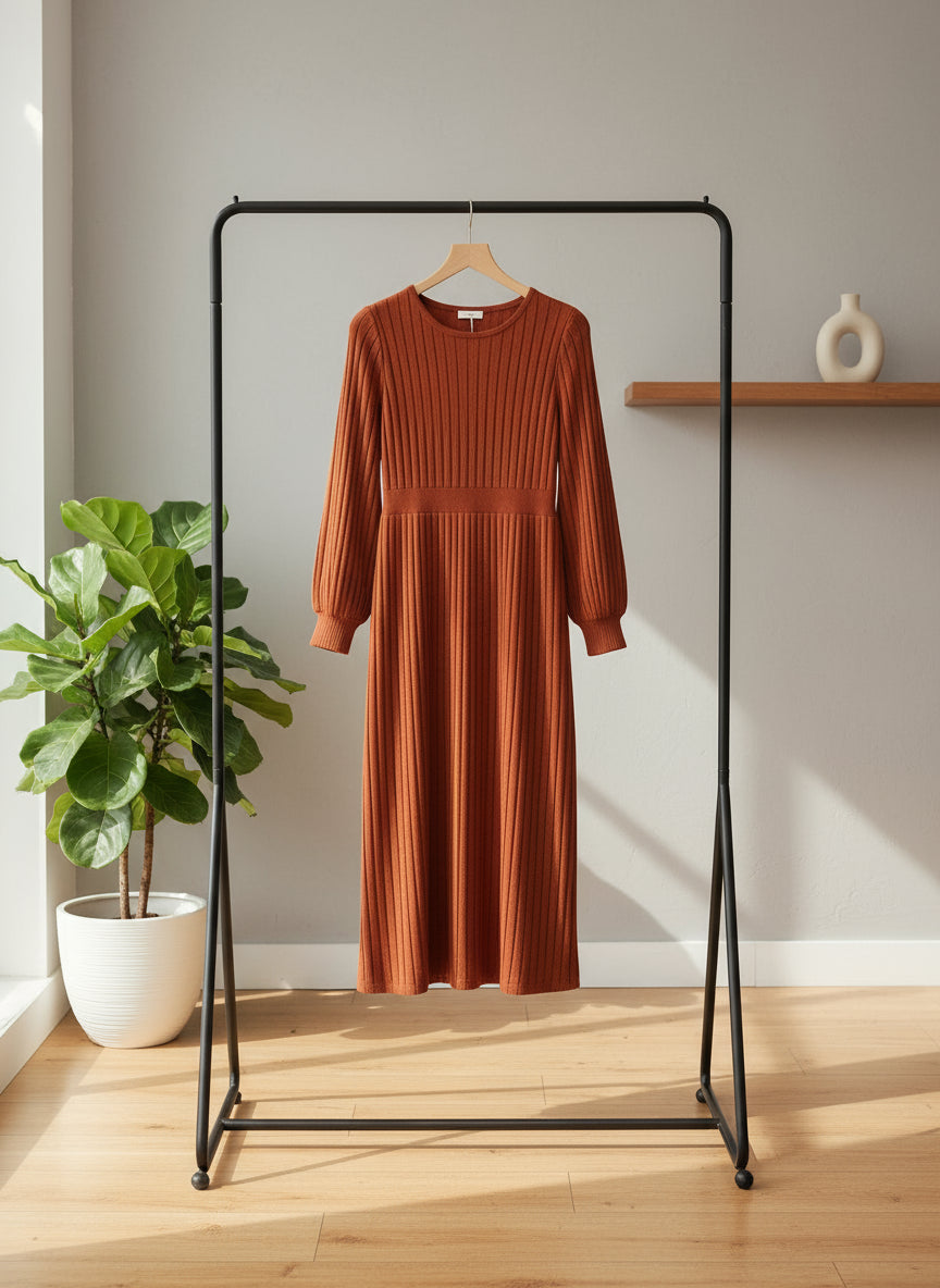 Une robe à la fois douce, extensible et élégante, parfaite pour toutes les occasions : bureau, sortie, ou dîner d’automne.