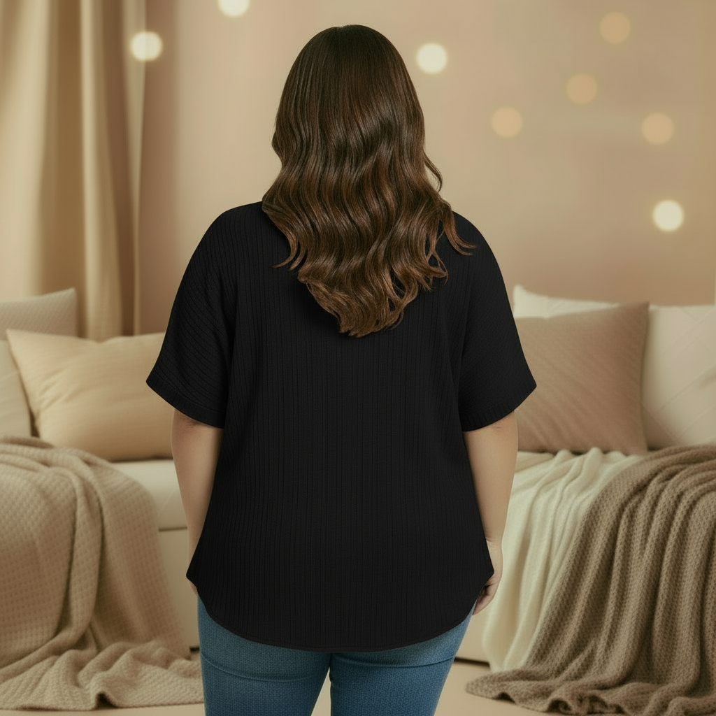 Alliez style et aisance avec ce T-shirt grande taille à col V zippé, pensé pour les femmes qui aiment conjuguer simplicité, élégance et confort.