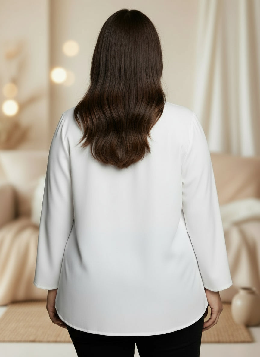 Ce t-shirt manches longues grande taille est pensé pour celles qui veulent un style chic et sans effort. Fluide, confortable et moderne, il épouse la silhouette sans la marquer pour un look féminin et affirmé au quotidien.